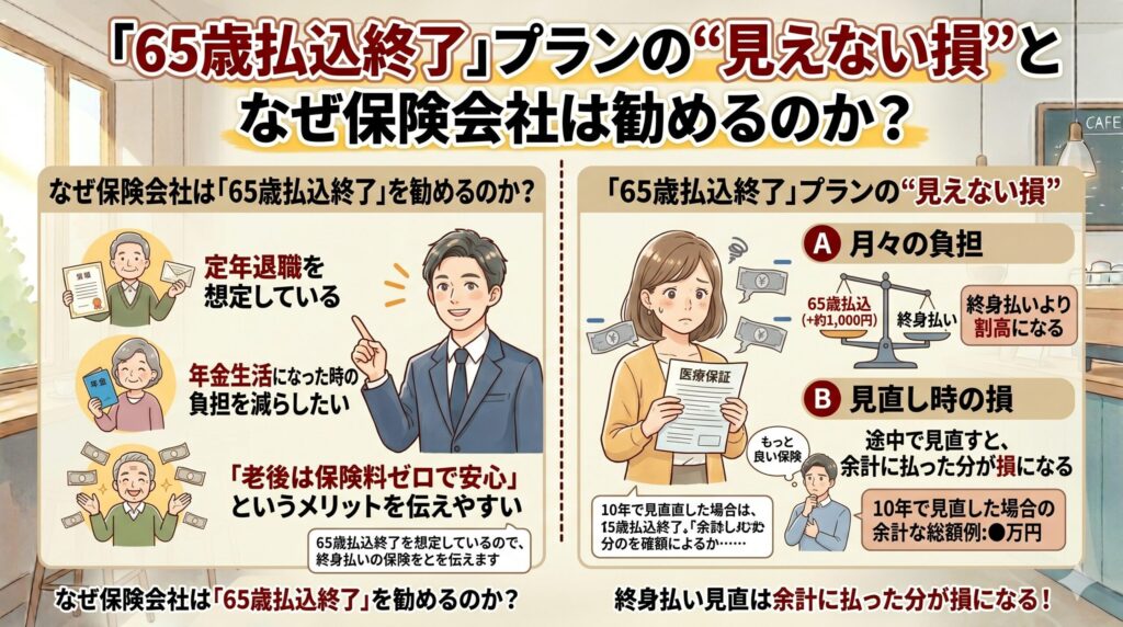 保険会社や担当者が「65歳払込終了」を提案する理由は明確です。
